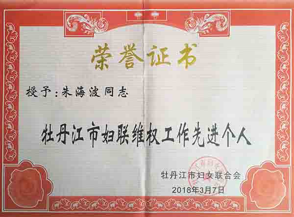 集團公司法務(wù)總副部長、機關(guān)支部書記朱海波,始終堅持把滿腔的熱情化作工作的動力,在公司工會的正確領(lǐng)導(dǎo)下,以維護女職工合法權(quán)益為主題,提高全體女職工素質(zhì)為目標(biāo),充分調(diào)動了廣大女職工的積極性、創(chuàng)造性,為構(gòu)建企業(yè)和諧發(fā)展做出了積極的貢獻。維護好女職工的合法權(quán)益和特殊利益,是婦委會基本職責(zé)和不可推卸的責(zé)任,積極開展權(quán)益保障行動,把維護女職工的合法權(quán)益作為一切工作的出發(fā)點和落腳點。關(guān)心困難女職工生產(chǎn)和生活情況,定期開展“愛心送溫暖”幫扶活動,并組織廣大女職工積極參與牡丹江市組織的“我為雪城添新綠”“關(guān)愛母親河”“金秋助學(xué)”“共享陽光關(guān)愛留守兒童”等系列公益活動,充分調(diào)動廣大女職工向社會伸出互助友愛之手,共同構(gòu)建牡安集團正能量愛心聯(lián)盟。她榮獲牡丹江市婦女聯(lián)合會“維權(quán)先進個人”光榮稱號。